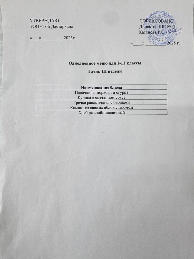 Бір күндік ас мәзірі