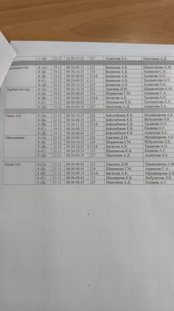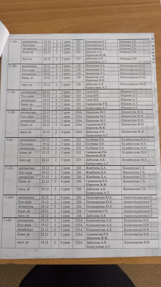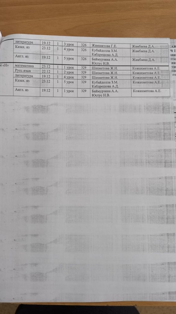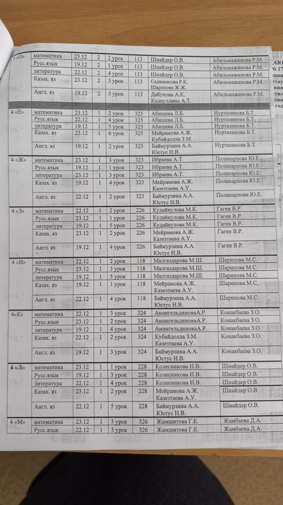 2023-2024 оқу жылындағы №17 мектеп-гимназиясы әкімшілігінің сабақтарға қатысу кестесі