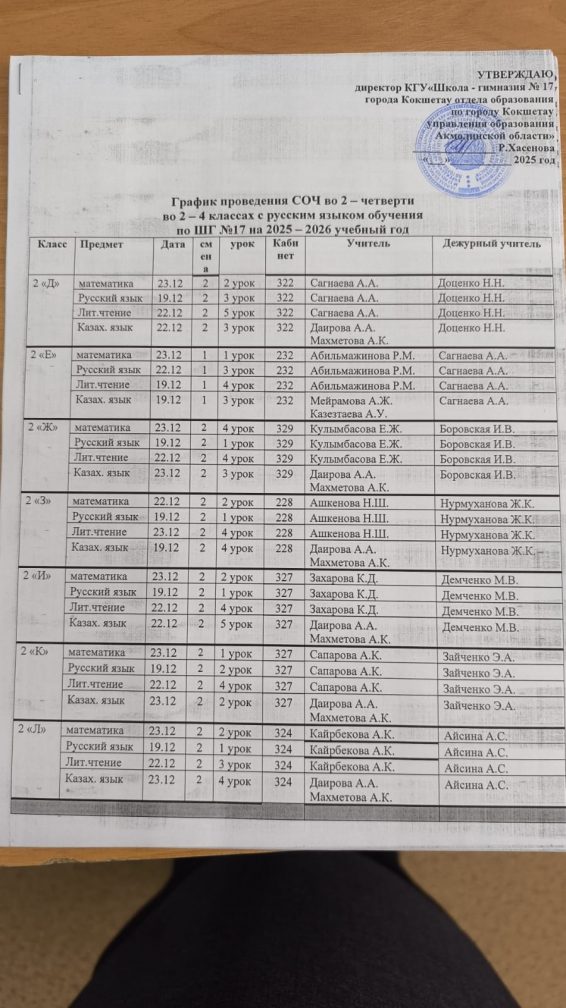 КӨКШЕТАУ ҚАЛАСЫ БІЛІМ БӨЛІМІНІҢ "№17 МЕКТЕП-ГИМНАЗИЯСЫ" КОММУНАЛДЫҚ МЕМЛЕКЕТТІК МЕКЕМЕСІ