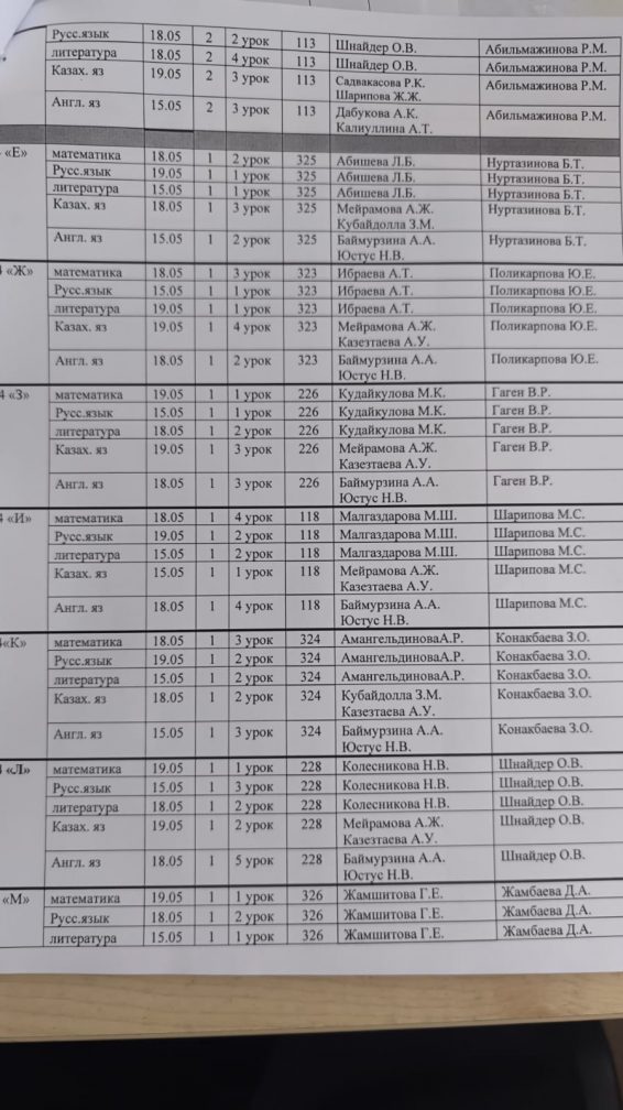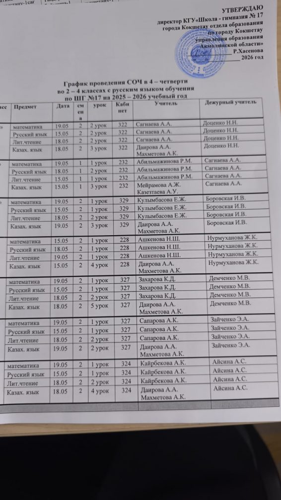 График проведения суммативного оценивание за четверть (СОЧ) за 4 четверть 2025-2026 учебного года в 2-4 классах с русским языком обучения